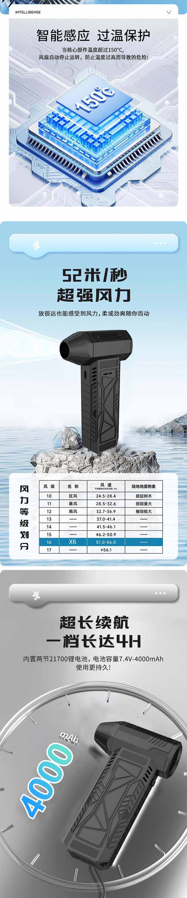 暴力风扇DT520大电池容量强力高风速便携式小巧易携带USB充电风扇