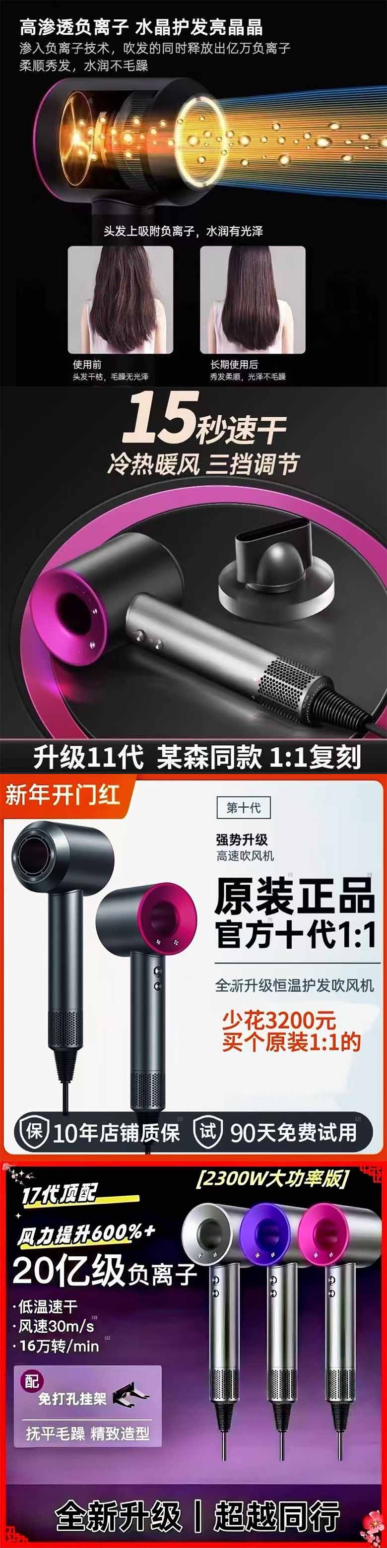 原高速吹风机高颜值负离子恒温无叶大功率宿舍酒店企业订购可开票