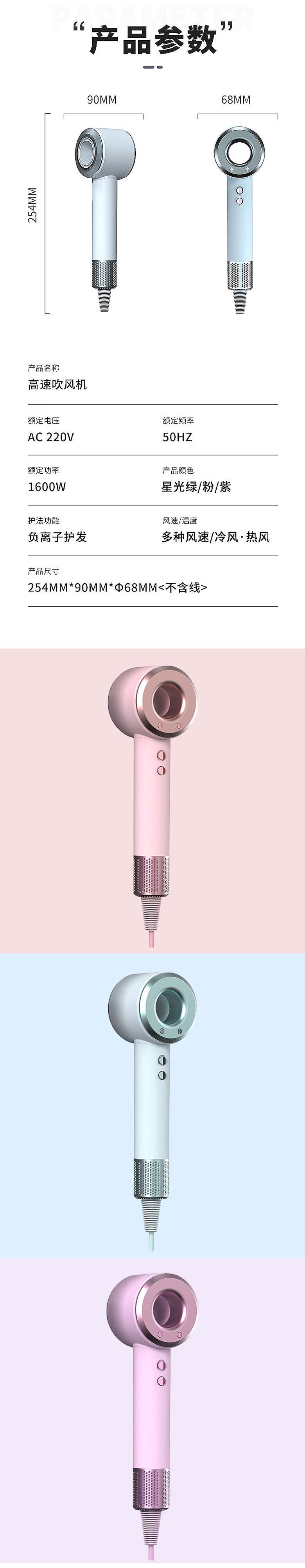 源头工厂新款无叶大功率恒温网红电吹风跨界吹风机私模速干
