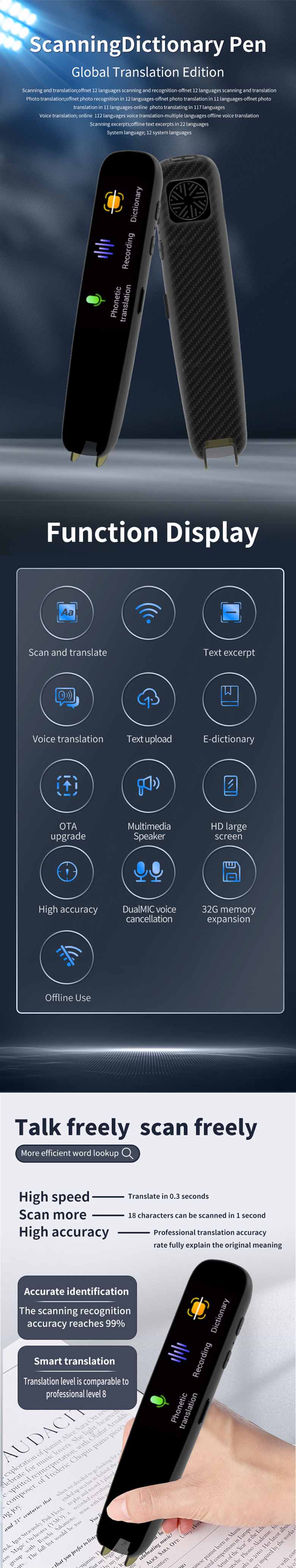 多国语言全科学习词典笔离线扫读笔课程同步翻译笔英语学习点读笔