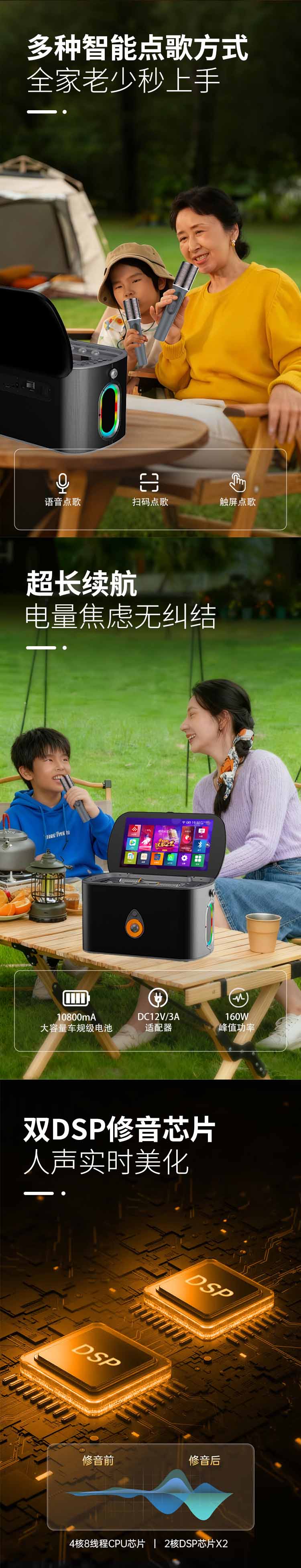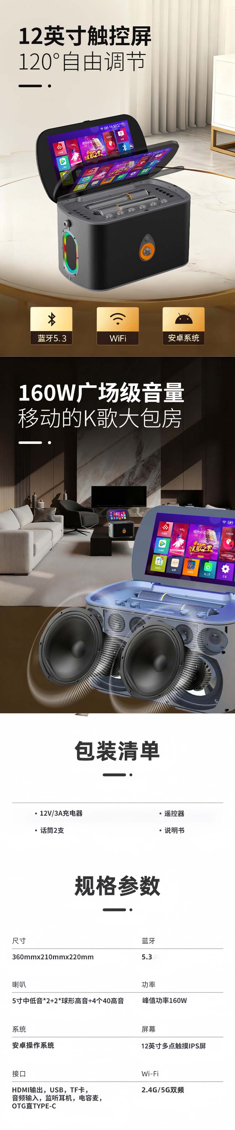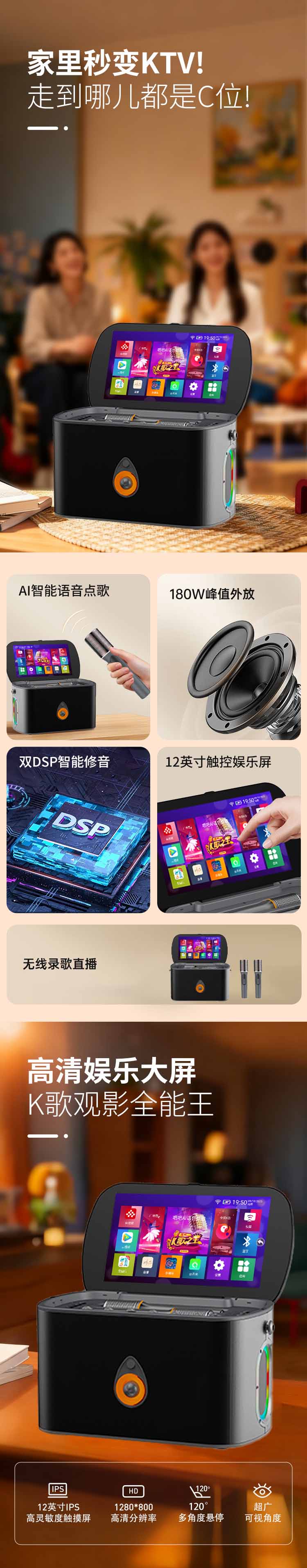 智能便携翻盖显示屏智能触摸户外K歌家用卡拉ok点歌一体机l蓝牙音