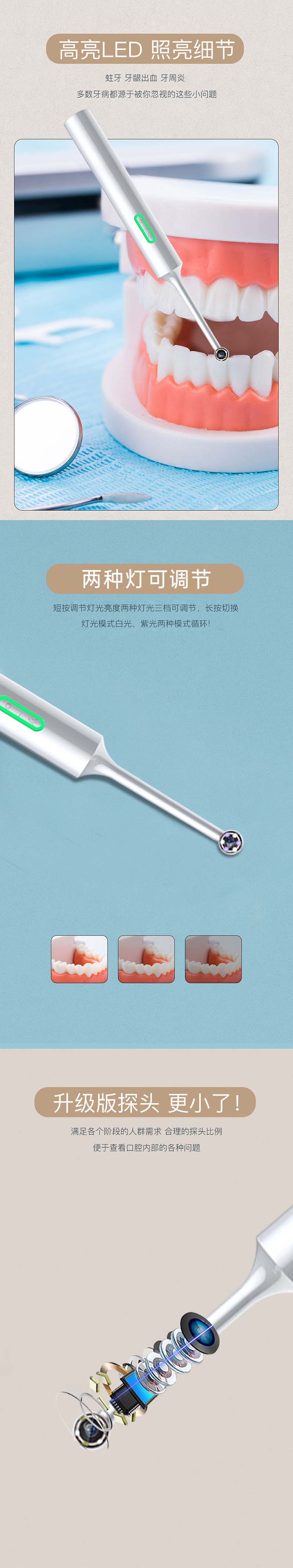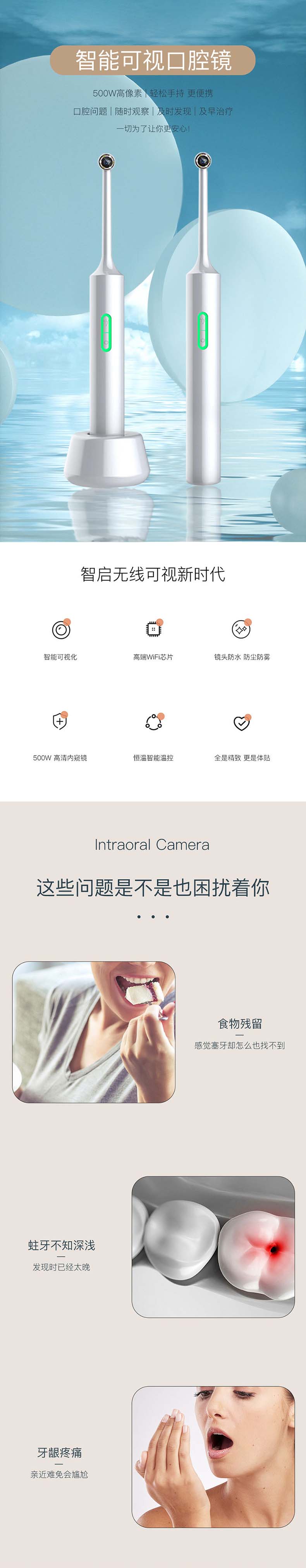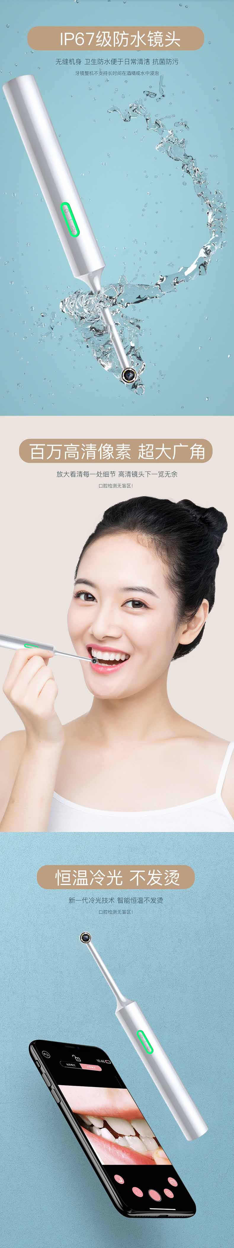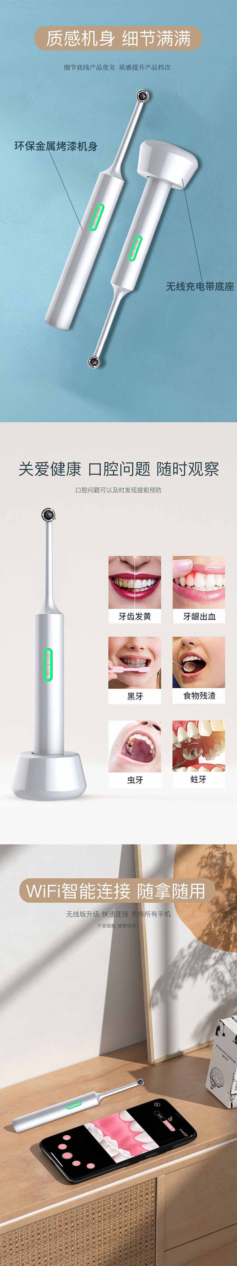 高清可视口腔镜WiFi连手机家用牙齿检查消毒杀菌牙镜口腔内窥镜