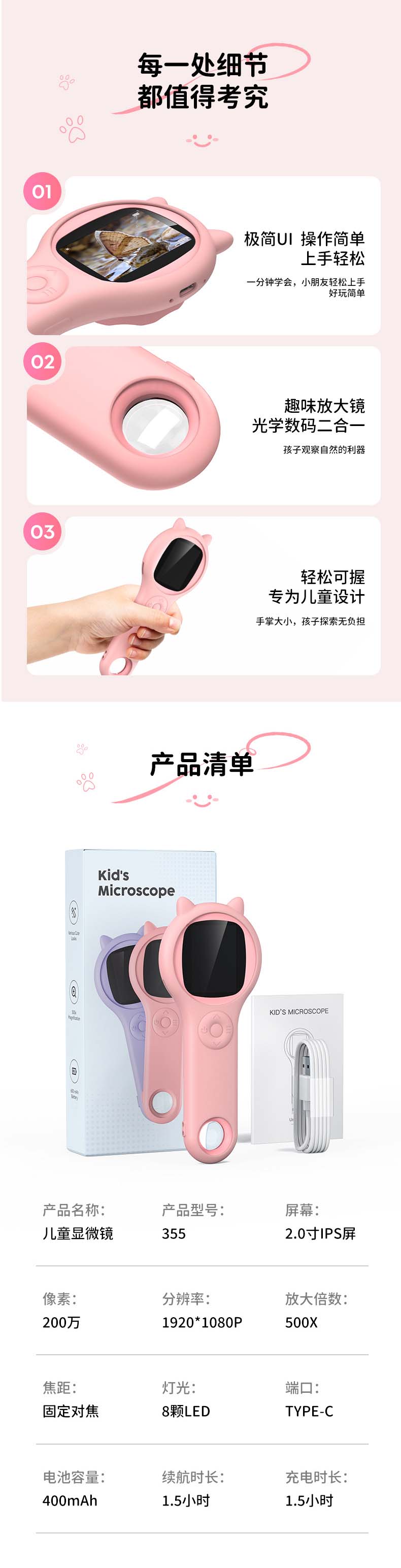 跨界亚马逊显微镜升级款儿童放大镜家教学习200W显微镜微距镜头
