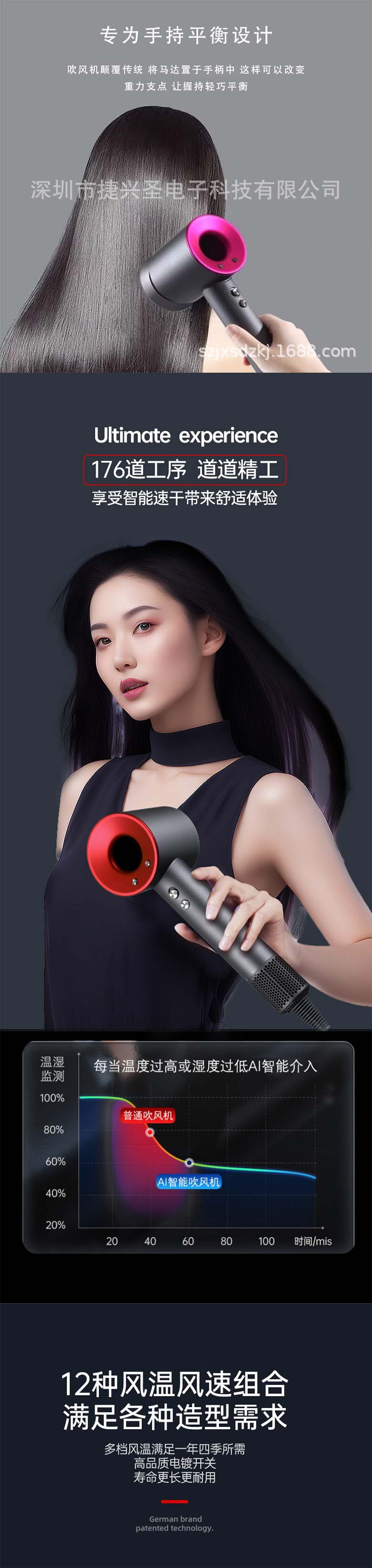 Hair dryer, negative ion bladeless hollow hair salon, hair dryer, quick drying hair dryer, high-speed bladeless hair dryer, air duct, household use