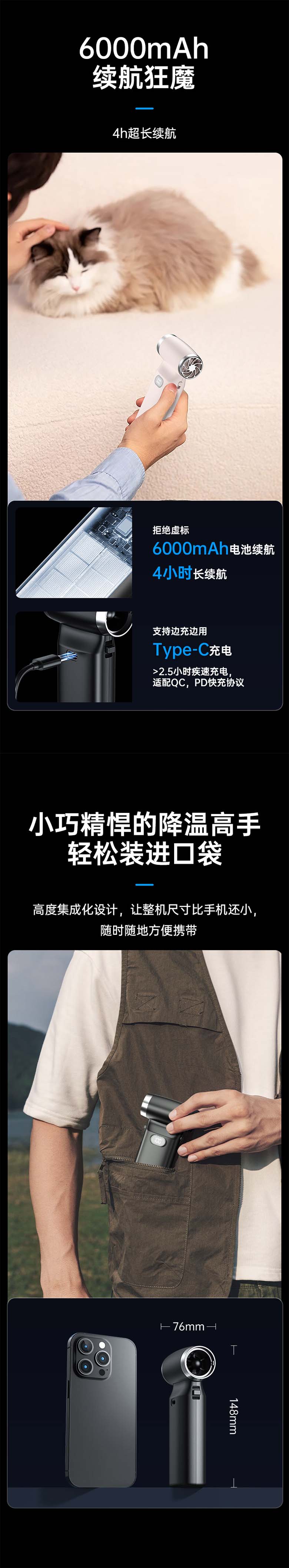 Cross border authentic handheld vortex fan for home outdoor camping, portable blowing and suction dual-use, high wind power, cross-border high