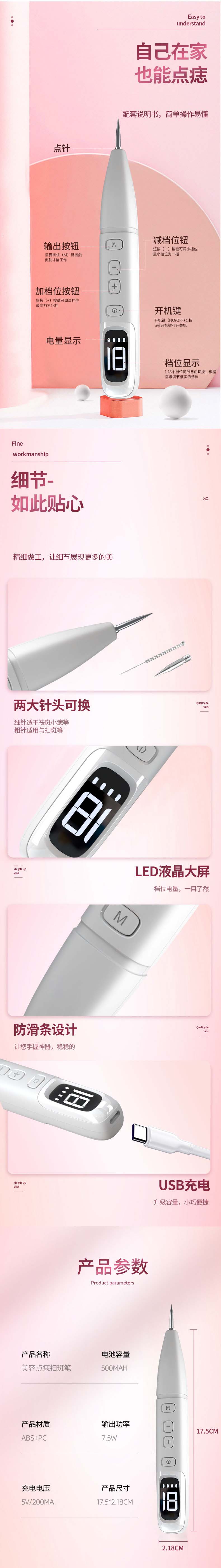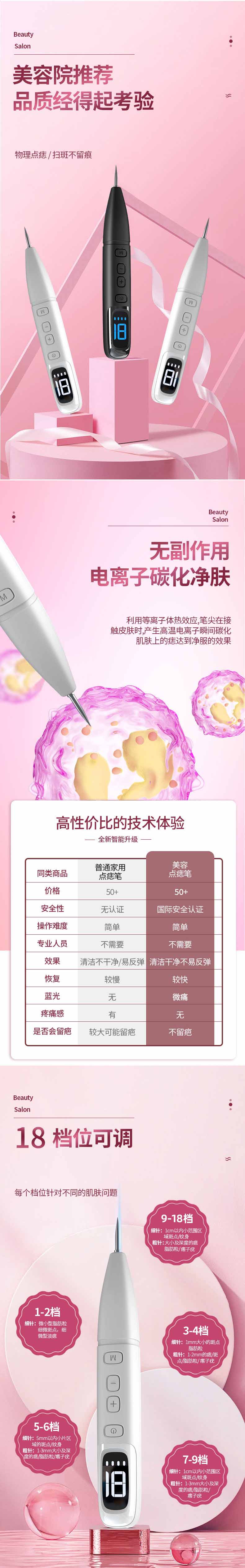 Wholesale LCD mole pens, spot scanning pens, beauty salons, facial care, 18 level adjustable mole pens, beauty devices from manufacturers