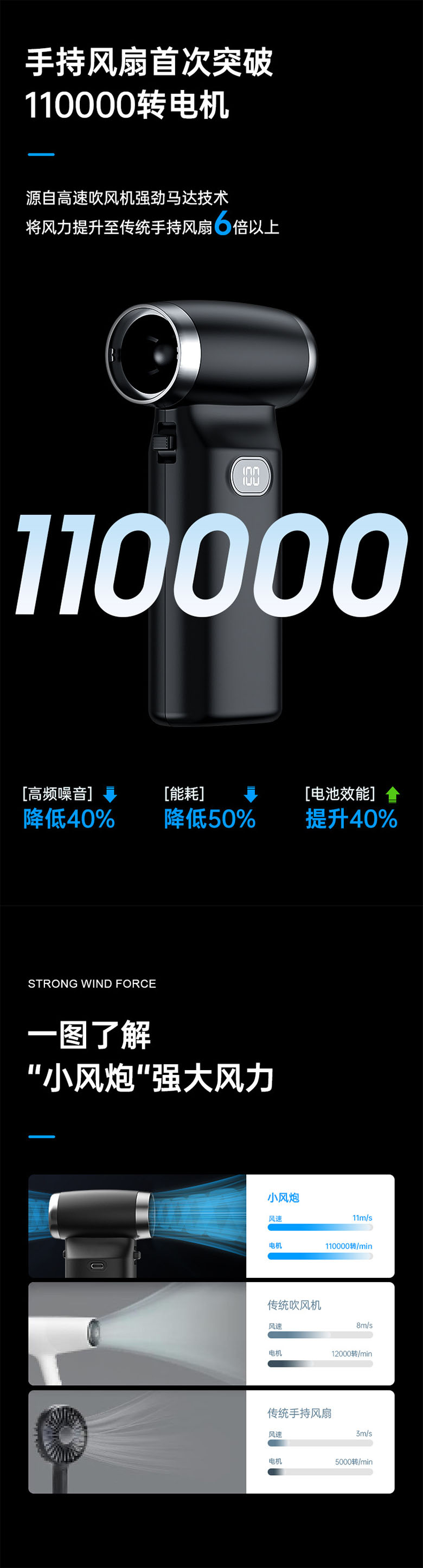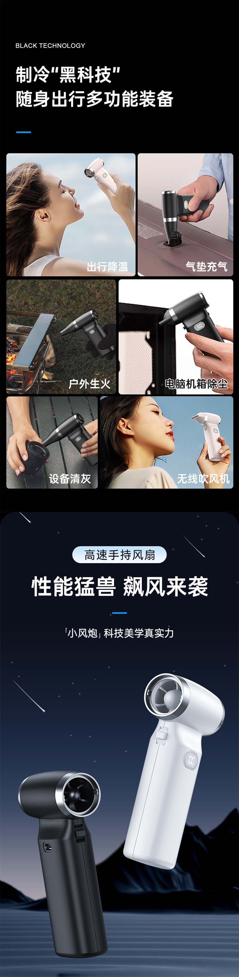 Cross border authentic handheld vortex fan for home outdoor camping, portable blowing and suction dual-use, high wind power, cross-border high